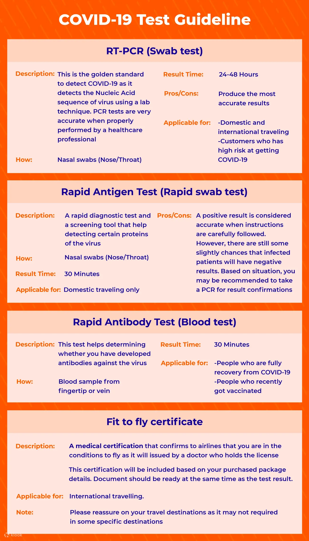 . Get test results Fit-to-Fly certificate or medical certificate. Result available in 24 hours. You can get it from a hospital by informing them that you want to get the Fit-to-Fly certificate.